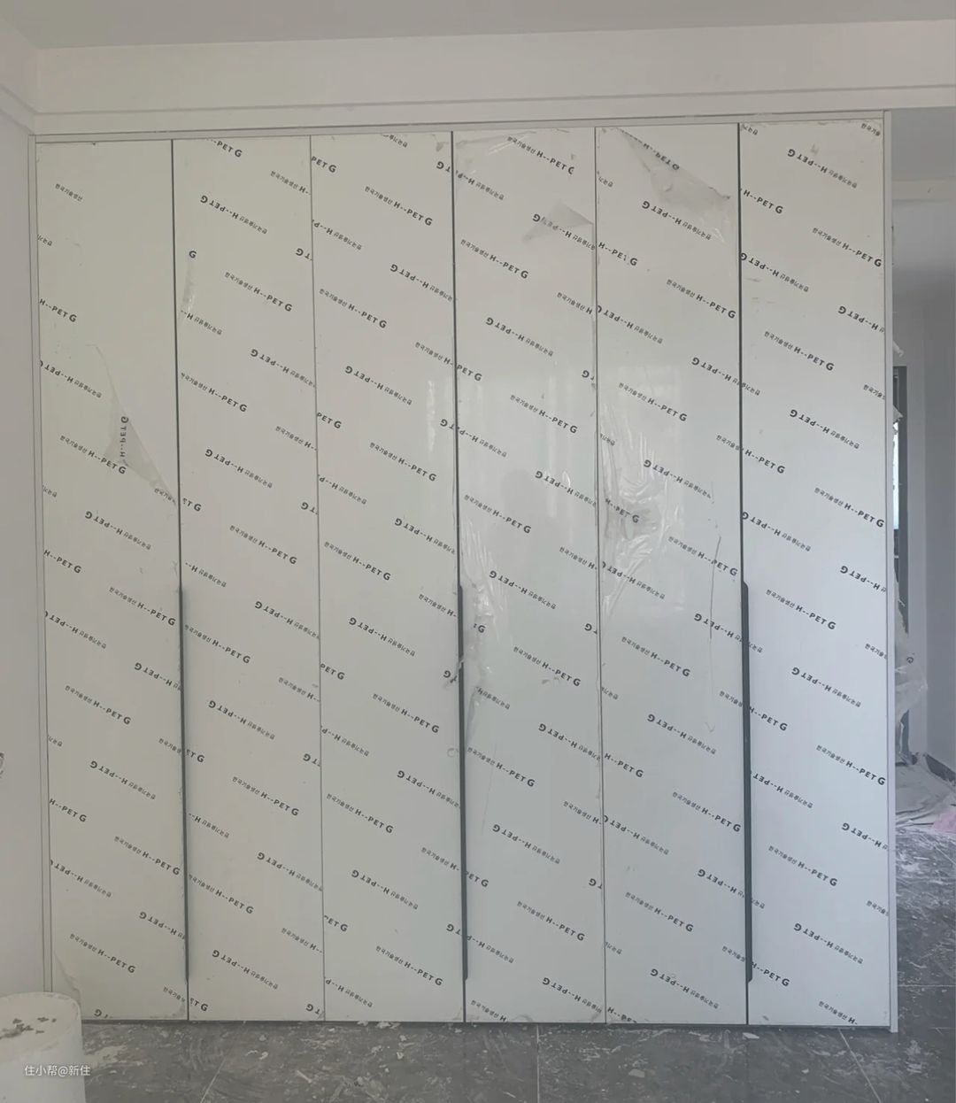 这样,一来是免得开荒保洁、装门时严重的灰尘再飞到柜子上,引起的二次清洁,二来是进床和其它家具时,也能暂且保护下柜子不被直接蹭到。