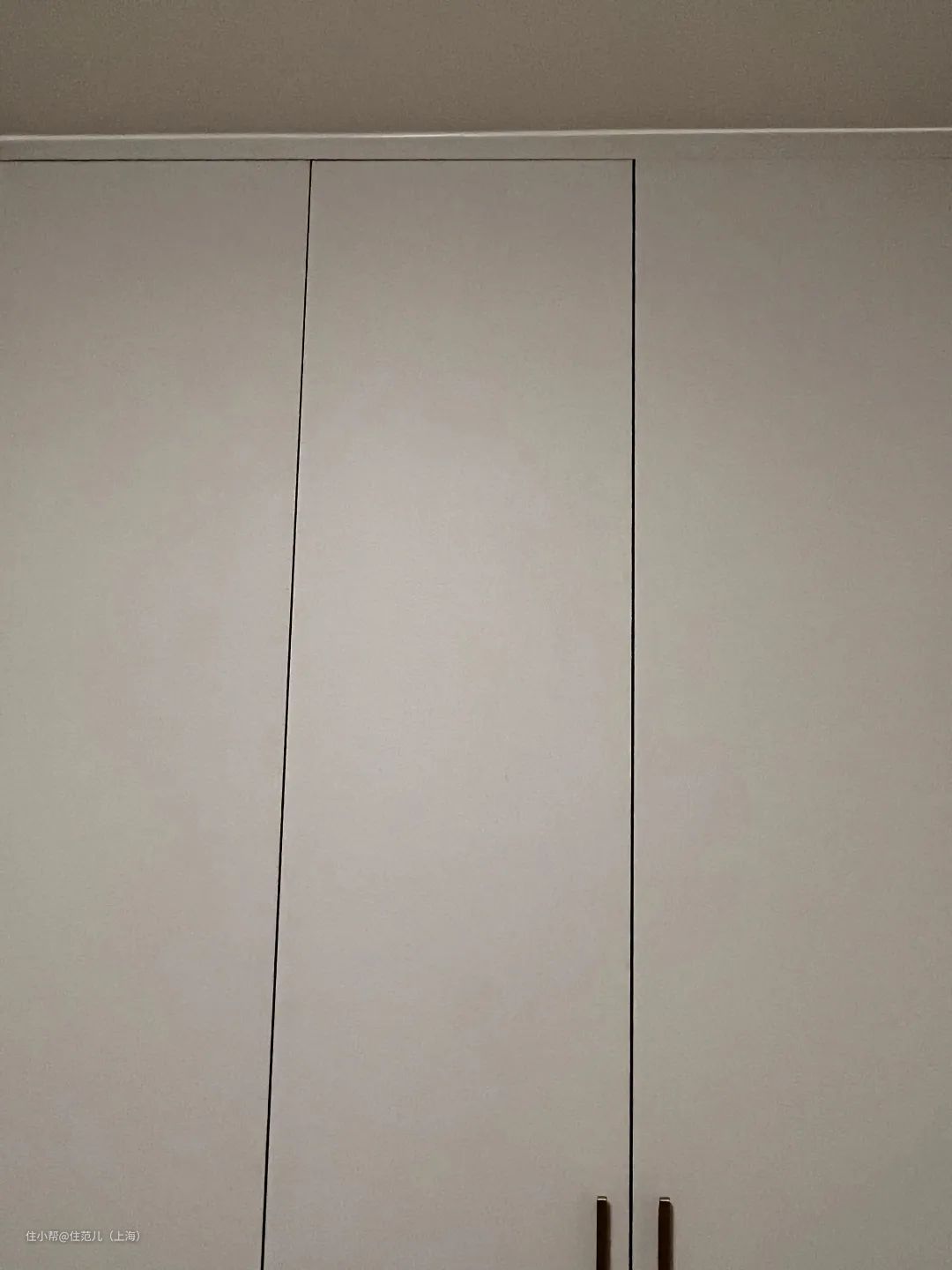 ▼步凉云家的定制柜和天花之间,打胶后稍显突