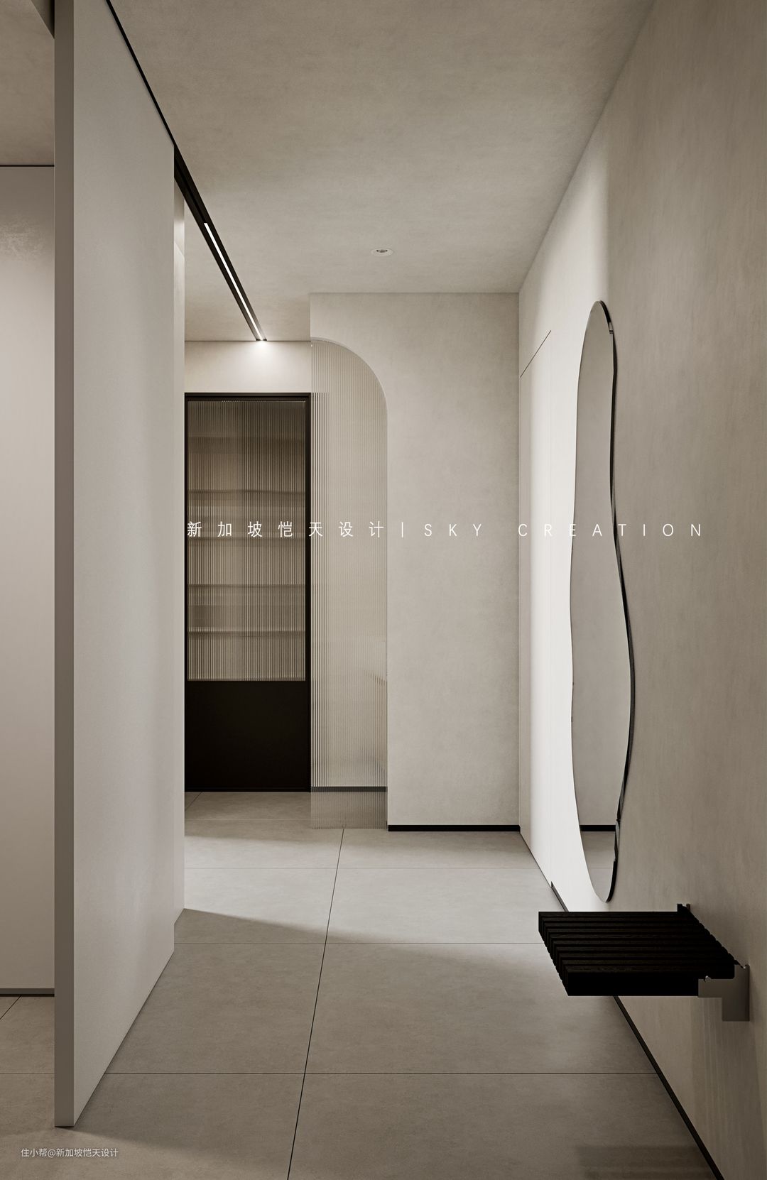 先说家具,除了色调上的尽量协调统一外,像是这个案例中可折叠的玄关凳就很值得码住。