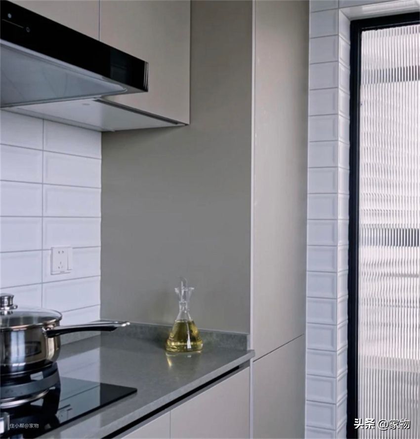 烟道部分不要砌墙,留出15cm打薄柜,底部和地柜保持齐平,作为调味品收纳柜比白白浪费好多了!