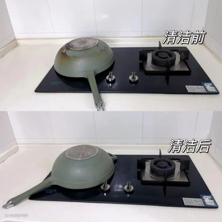 齐活,简单清洁以后,效果还是令人满意的,整体图片上虽然看不清细缝污渍的效果,但是锅具上的油污是真的很明显,以后家里烧糊的锅具都可以用蒸汽清洁机清洁了~