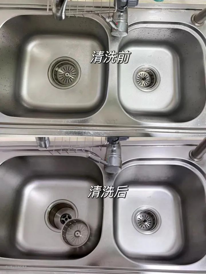在水槽被彻底清洁之后,整体褪去一层「黄衣」,显得更加亮白。