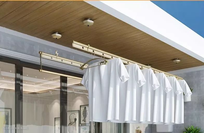 ▲如图,一般在北方,受天气的影响,大部分人会选择在阳台的吊灯上方装上一两条的铁丝来满足晒衣服的需要。但是衣服是晒好了,却留下了一个烦恼:要购买一根晾衣杆。晾衣杆是几块钱就可以买到,但是晒衣服收衣服都需要用到它,就是一件麻烦事了,所以还是建议大家选择电动晾衣架。