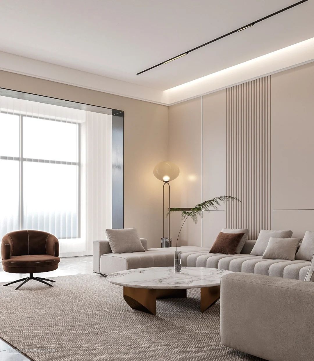 整个空间涵容着现代气息的简约宁静,设计在细微之处构建诗意,在材质与自然气韵的碰撞中寻觅生机。无论如何,极简的空间总能让人有一种宁静透彻的感觉,在极简的空间内,会感觉整个人都安静了下来。