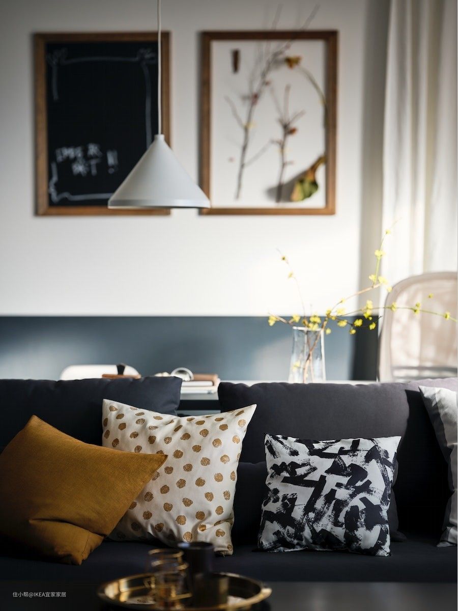 搭配多个靠垫,给予身体充足的支撑,升级舒适感。可以根据季节、心情随时更换垫套,换种风格。