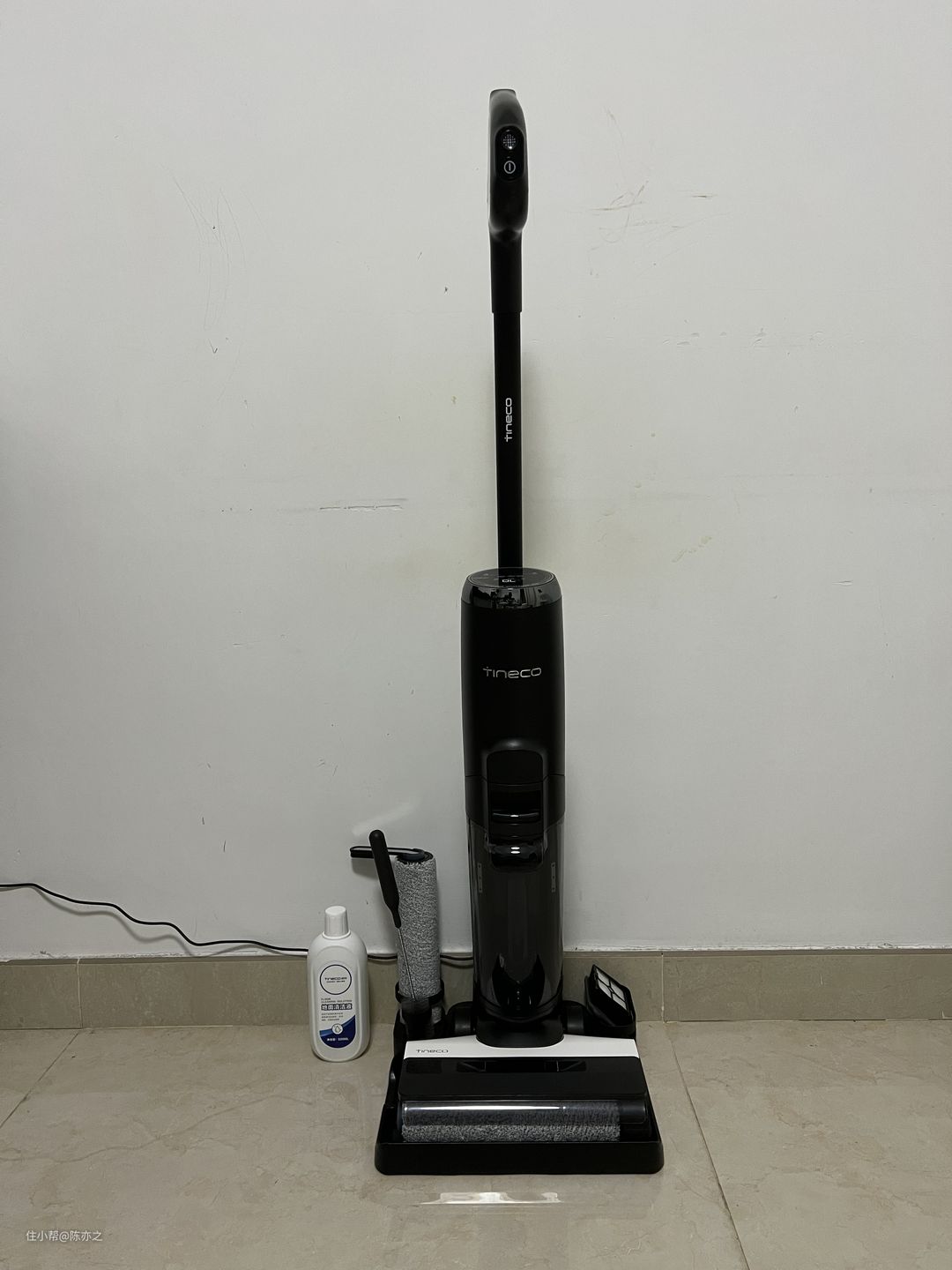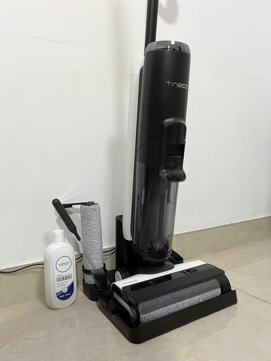 还值得一说的是它的马达牵引,在实际用这台扫地机的过程中,其实不是靠人为推动机器去清洁的,而是人被机器牵引,是的,添可芙万2.0LED会拉着你跑,而你只需要稍微控制下滚刷的前进方向就可以了,使用很轻松省力,看起来笨重的机器实际控制起来很灵活。