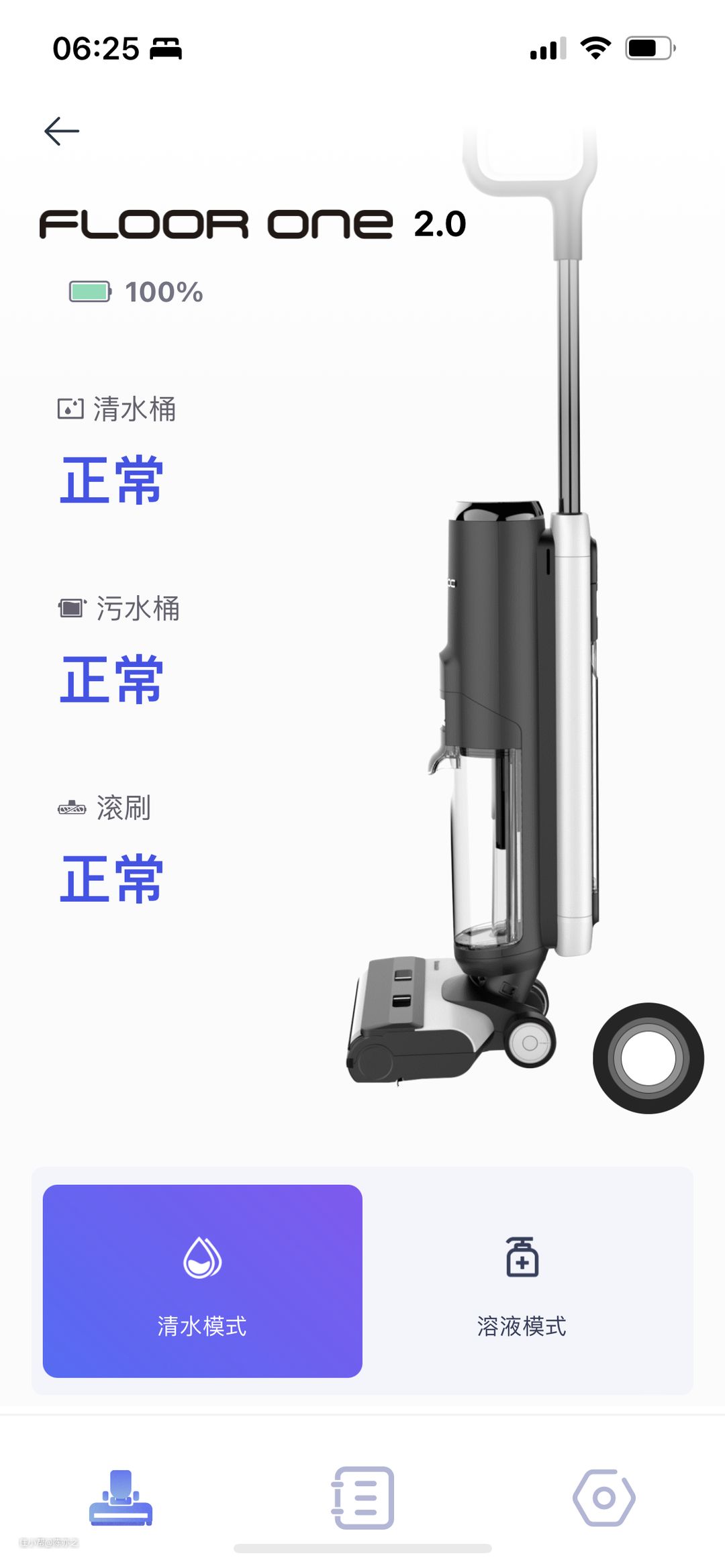 除了手柄的控制键以外,还能在手机上通过app来发布指令,进行模式的切换、信息查看,还能从app上获取到每日的清洁时间和清洁次数。如果出现污水箱装慢或者清水箱缺水的情况,它会自动通过语音提醒,很大程度上降低了学习使用成本,只需要照着语音做就行。