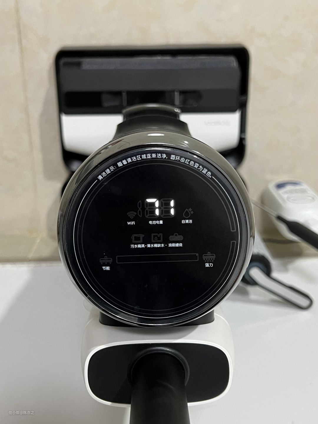 在实际使用过程中,添可芙万2.0LED带来的智能交互体验也是非常棒的,在主机的LED屏幕中,会有清洁状态显示,显示屏上的清洁环可以提醒用户地面的实际清洁情况。