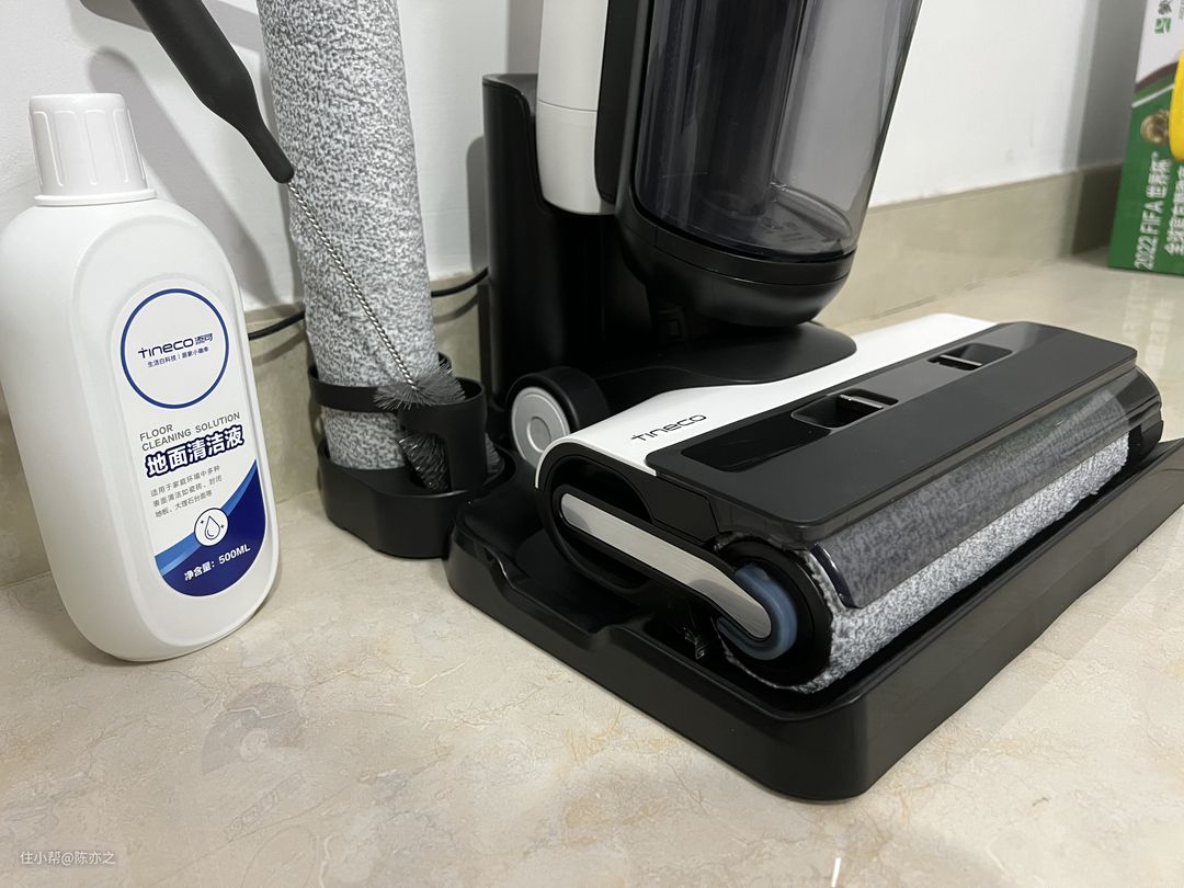 另外添可芙万2.0LED相比以往洗地机有一个亮点是它可以智能变频清洗,也就是在清扫时,它会根据地面的脏污程度,来自动调节清洗力度。比如遇到厨房内的顽固污渍,它会增加滚刷的力度,以能够彻底完全地清除掉它们;如果是在只有一些灰尘的客厅,它的清洁力度就会明显变轻,释放的水量也会相应减少。我认为这是一个相当实用的设计,洗地机对地面的智能判断,来决定是否需要更多的水量和更大的力度来清洁,以达到最佳的清洁效果,一来更加节能节水,二来地面也能更快干,产品的易用性很高,不需要人为的去操控这一过程,十分轻松省心。