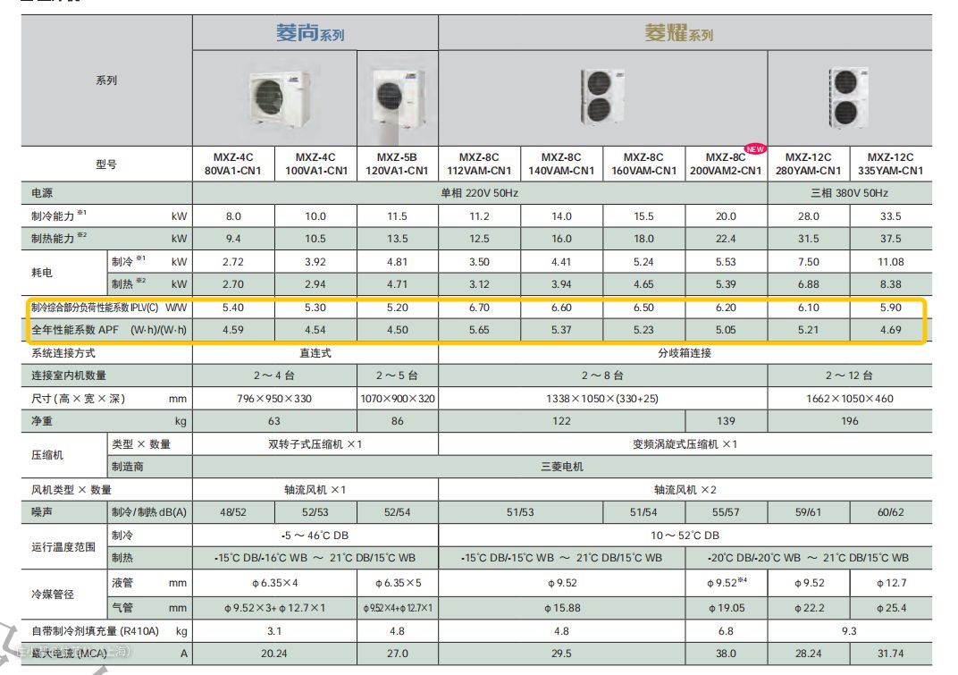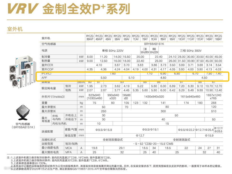 我随手查看了三菱电机中央菱尚、菱耀系列的IPLV值和大金金制VRV-U系列、P+系列的值,三菱的普遍在5~6.6之间;大金的普遍在6.5~7.5之间,所以大金的P和U在价格上也会卖的更贵些。