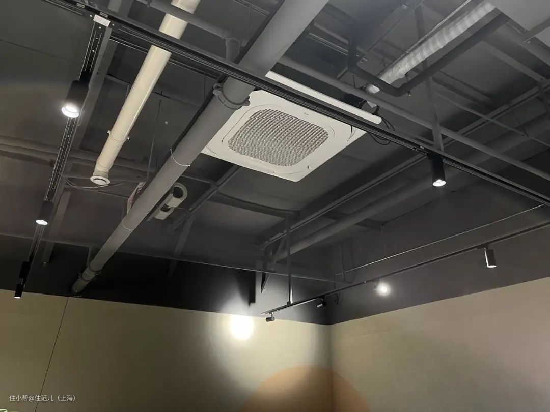 市面上中央空调主要都是供商用的,比如我头顶的这种,基本都是水机,省电省钱。