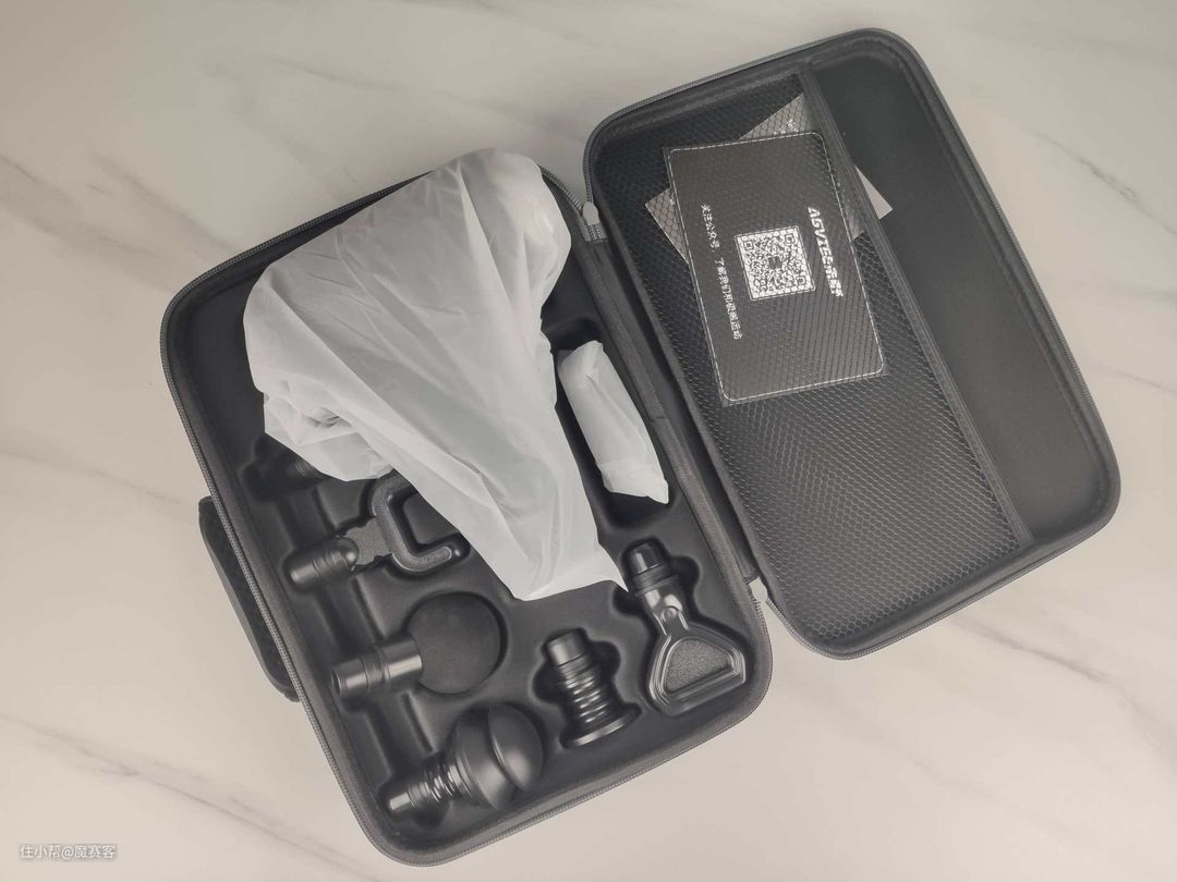 虽说我会随身携带mini体积的筋膜枪,但小体积筋膜枪有个无法避免的问题,一旦用力过大,机器就会“卡壳”罢工,而这把AGVIEE Pro体积并不算大,用收纳盒可以携带全套按摩头,而仅携带1~2个按摩头时则可以放入背包中,因此其不但携带方便,还能保证工作力度。