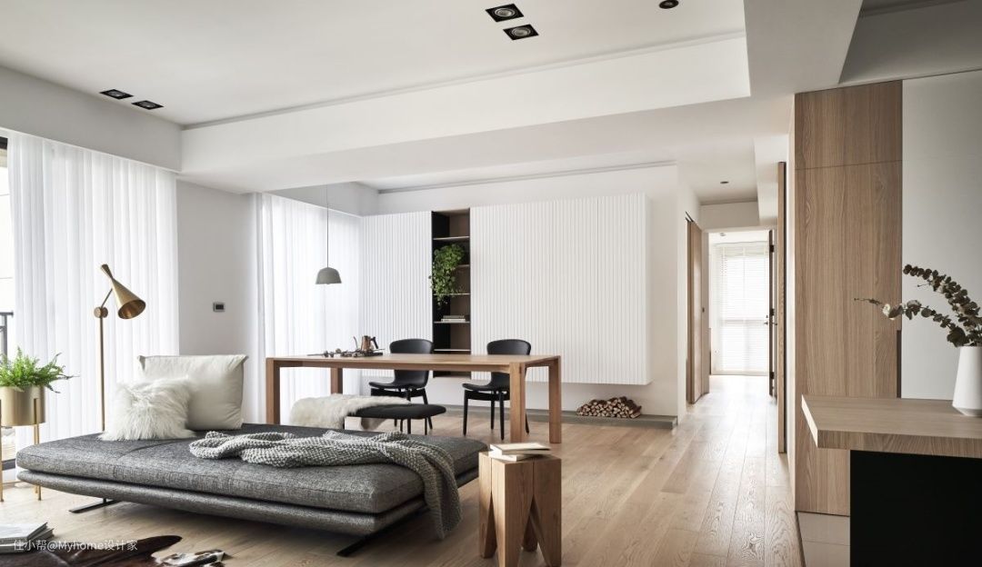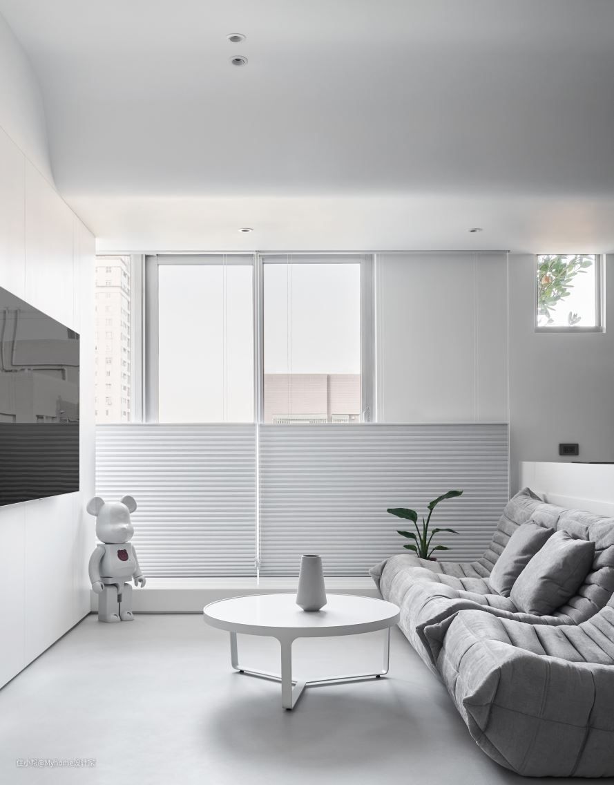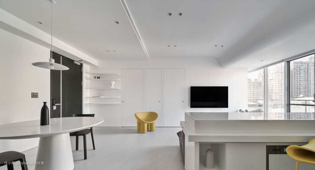 无接缝地坪与弧形修饰转角,在75%白的简约空间找到满满温暖