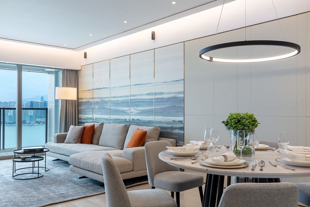 5、背景墙选灰蓝色,介于灰和蓝之间,是一种能让人心生宁静的色彩,用它作为背景色,能够营造出立体又灵动的空间感。