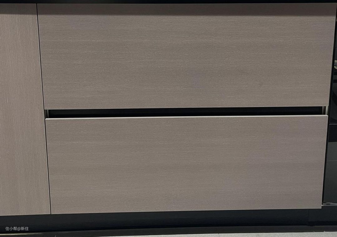 不同的是斜切柜门,对工艺要求稍高,相比挡板,可能会增加一些预算,但同时因为缝隙不用下凹,所以颜值、整体性也进一步提升。