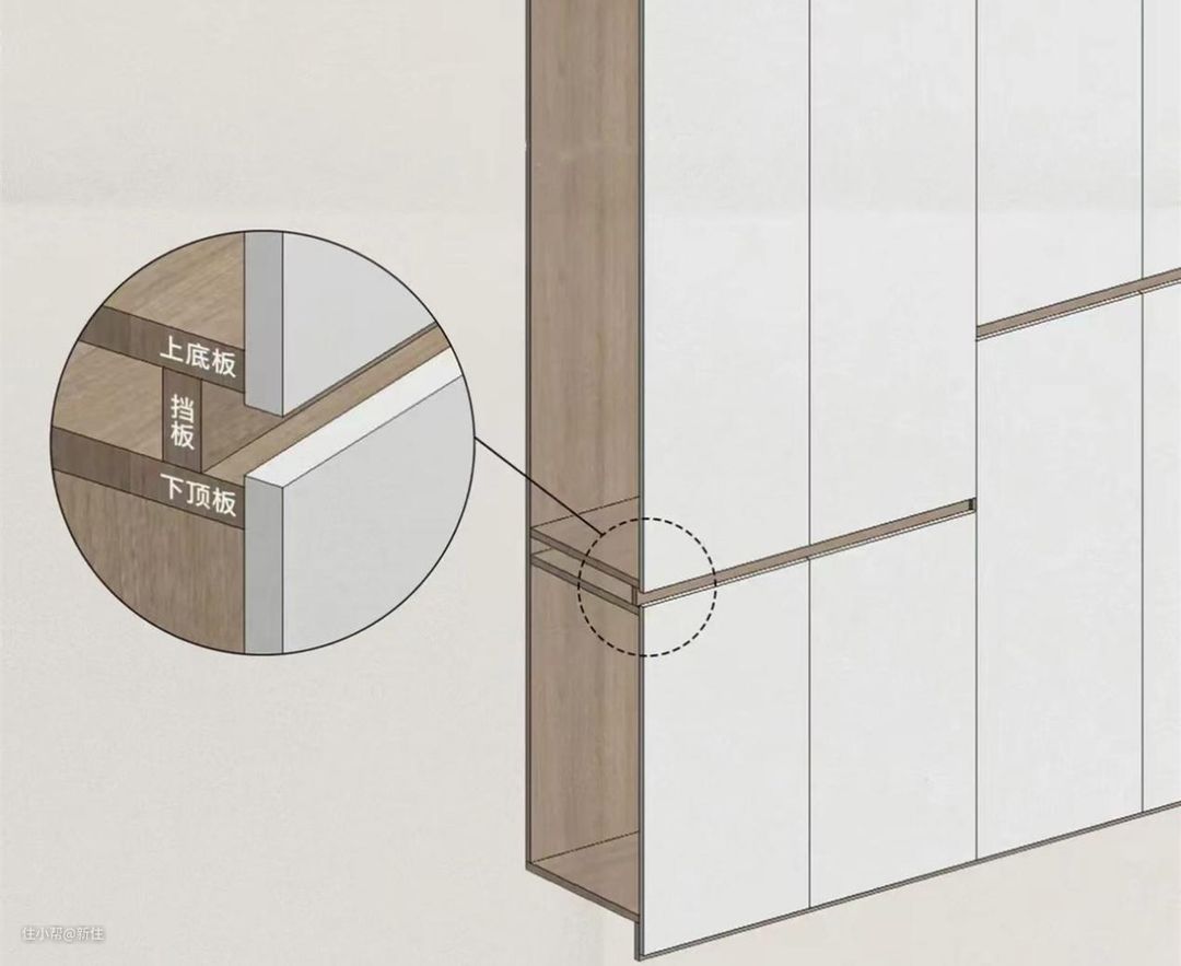 如此一来,中空格的见光板,也藏在柜门里面了,整个柜子看起来更清爽、美观。