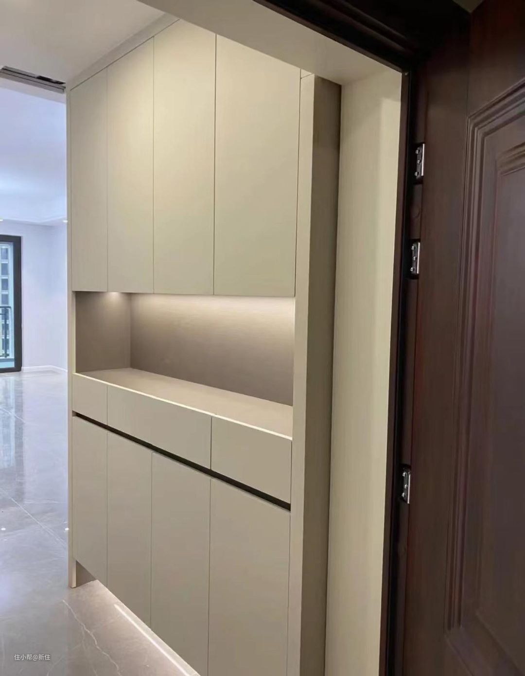 学习上进家,核心区与lucky小姐姐家吖,差不多,但是侧面却多装了一个线性拉手,导致鞋柜颜值崩坏。