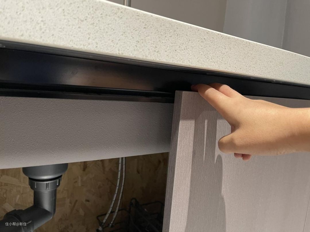 柜门直接压住台面、见光板,平时柜门开启,就靠手指拨开。