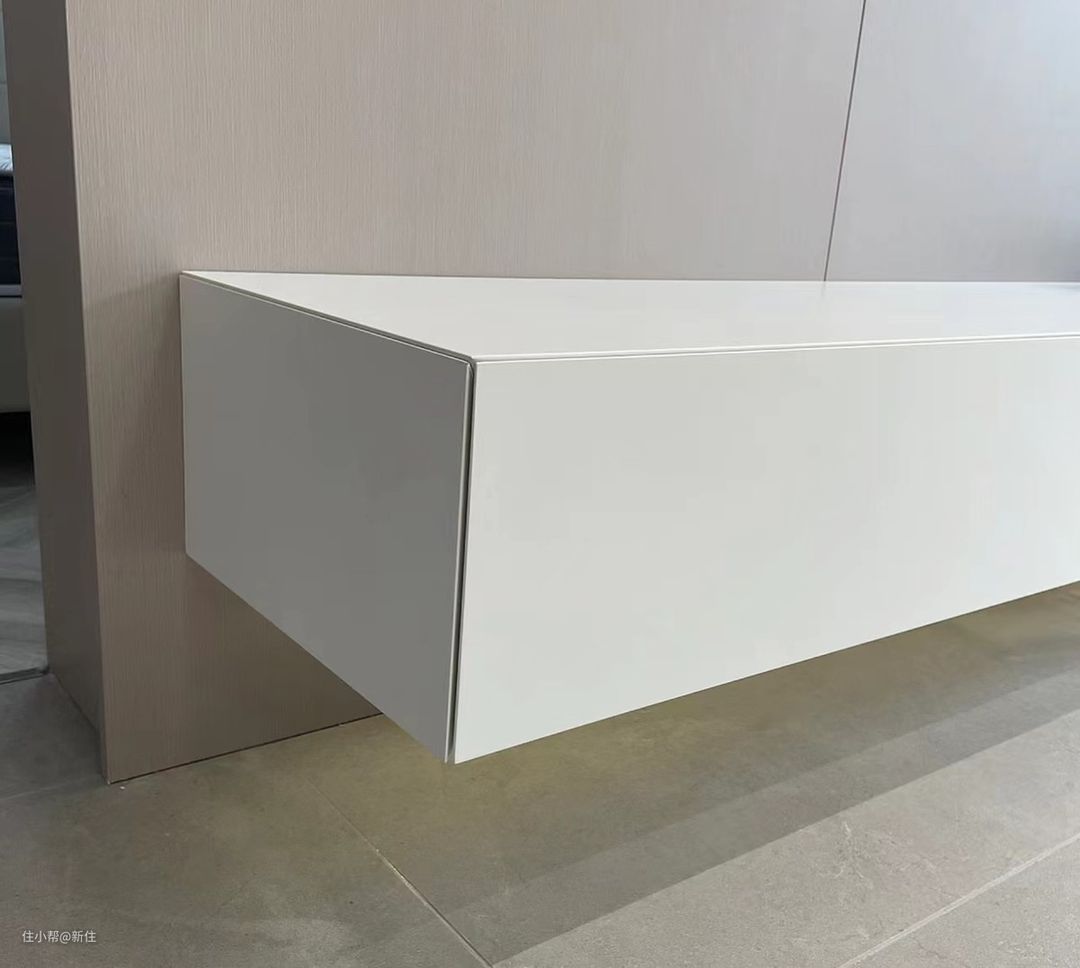 相比金属型材,成本、工艺难度,都差不多,整体性有进一步提升,因为挡板可以跟柜门同质感,如果有需要还能做同色。