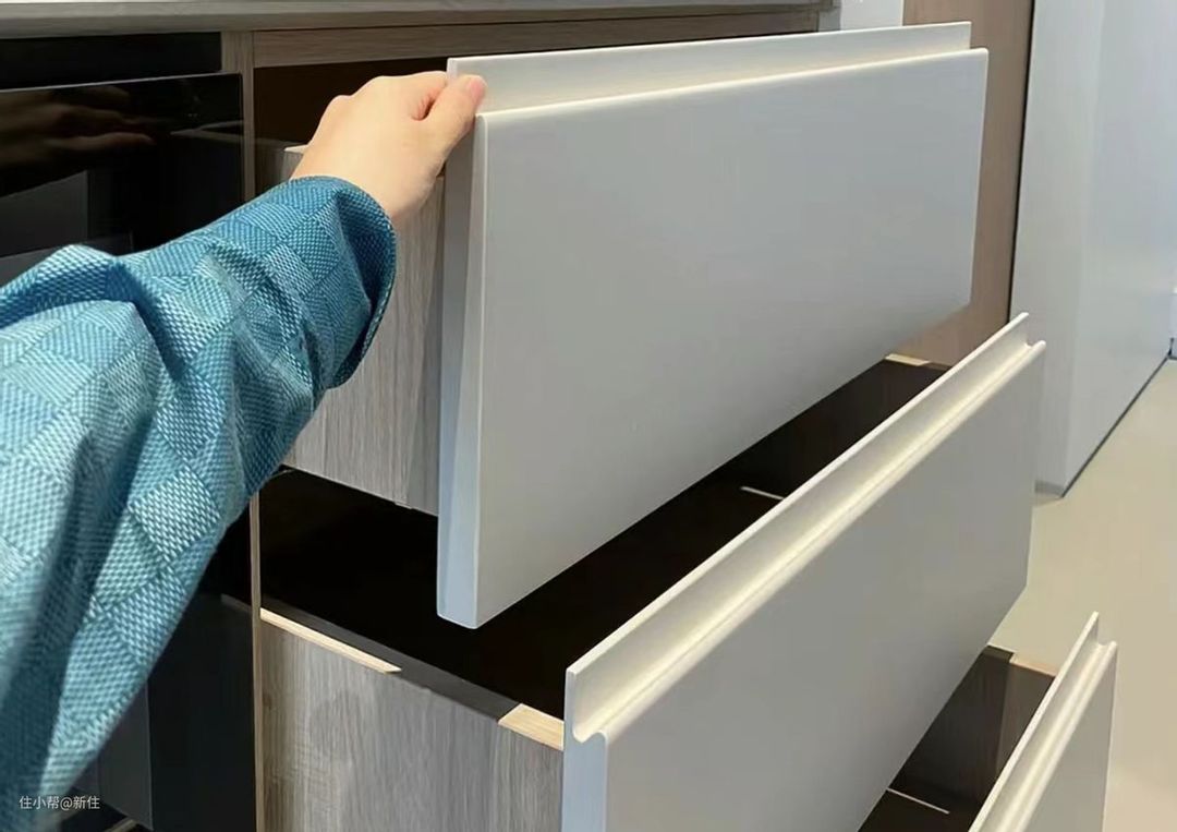 但无奈,为此,它丧失了几乎所有拉手的优点,安装简单、价格低廉、开合方便,一样没占,同时也没能解决拉手藏污纳垢痛点。