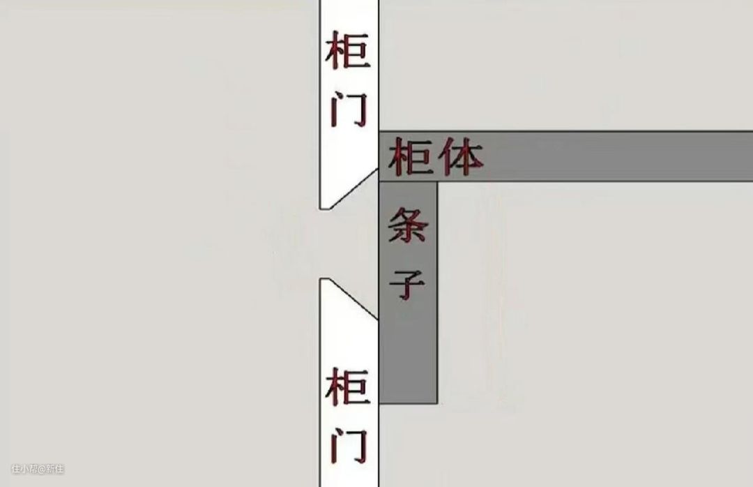 对门板进行45°角斜切,然后两个柜门之间,留2.5mm的空隙,方便人手去抠柜门。