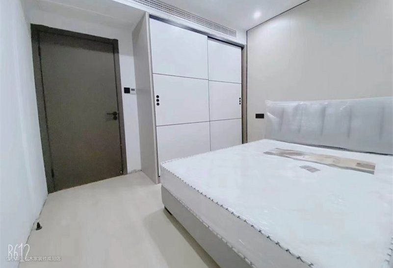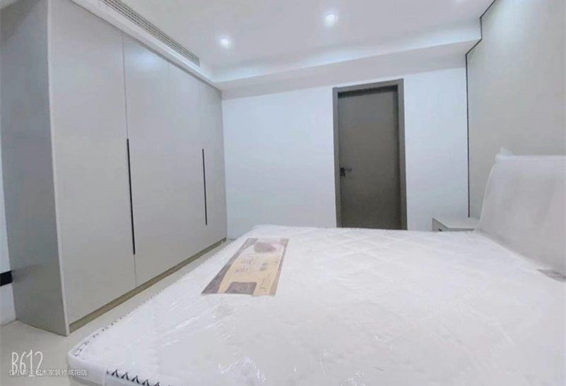 卧室整体以白色环境为主,简单大气,拖拉门衣柜和平开门衣柜均有良好的储物属性;