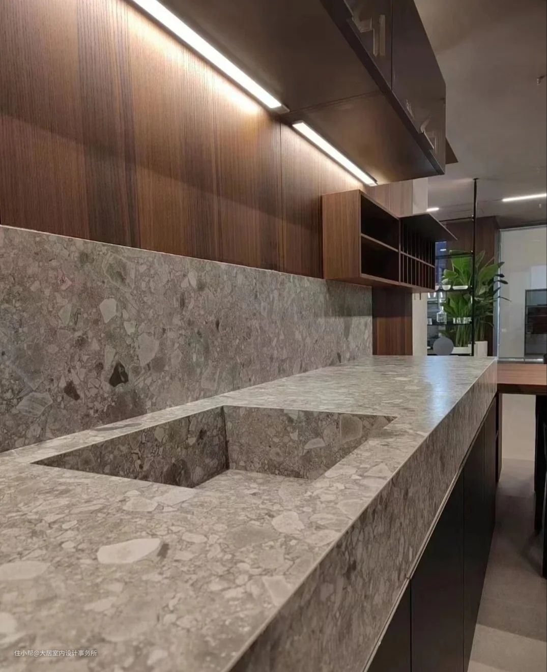 六、因为需要匹配装修风格,日趋变化更替的装修风格和较小的户型都很不适合用花岗岩,老旧、深沉,且满目麻点的台面效果上跟不上节奏,不够时尚。人们更希望能用更时尚,肃静,和质地看起来纯净,温暖的石材。