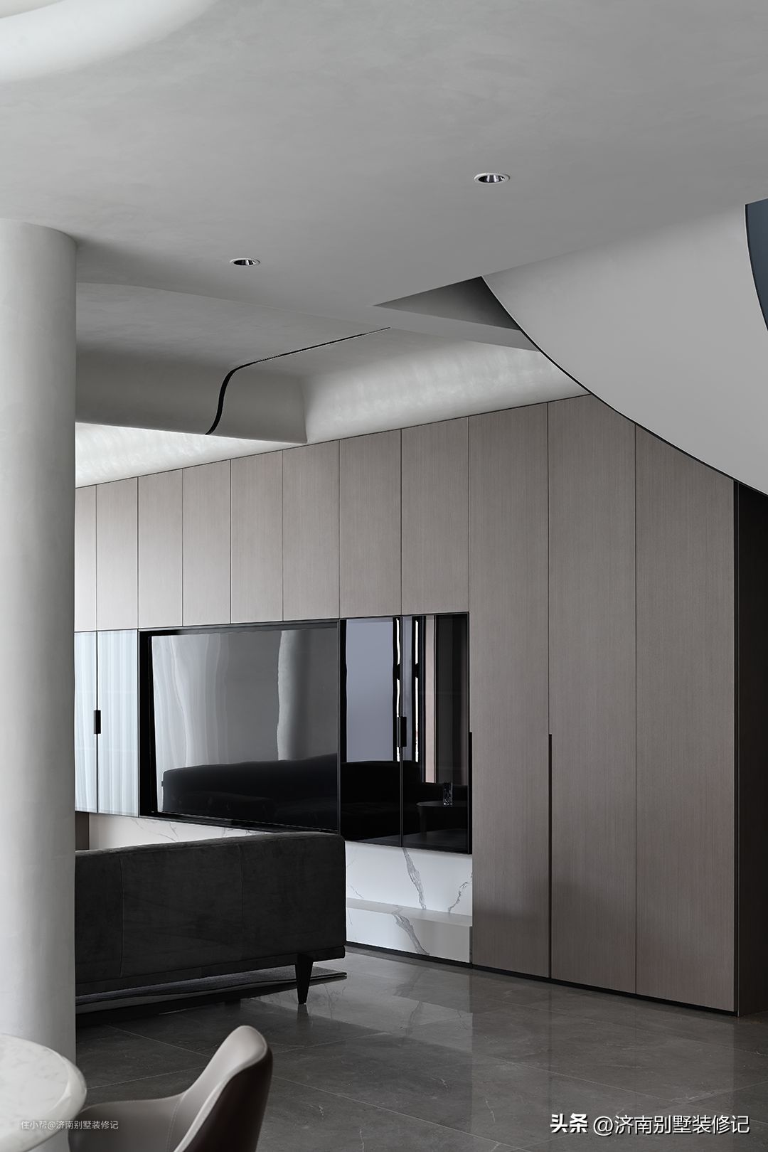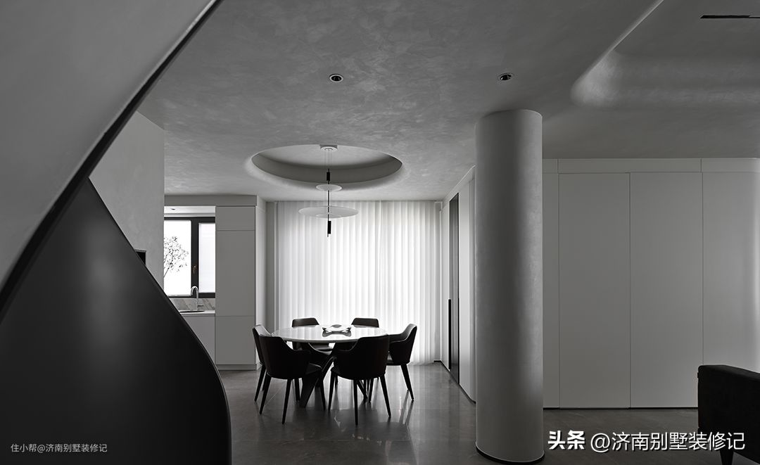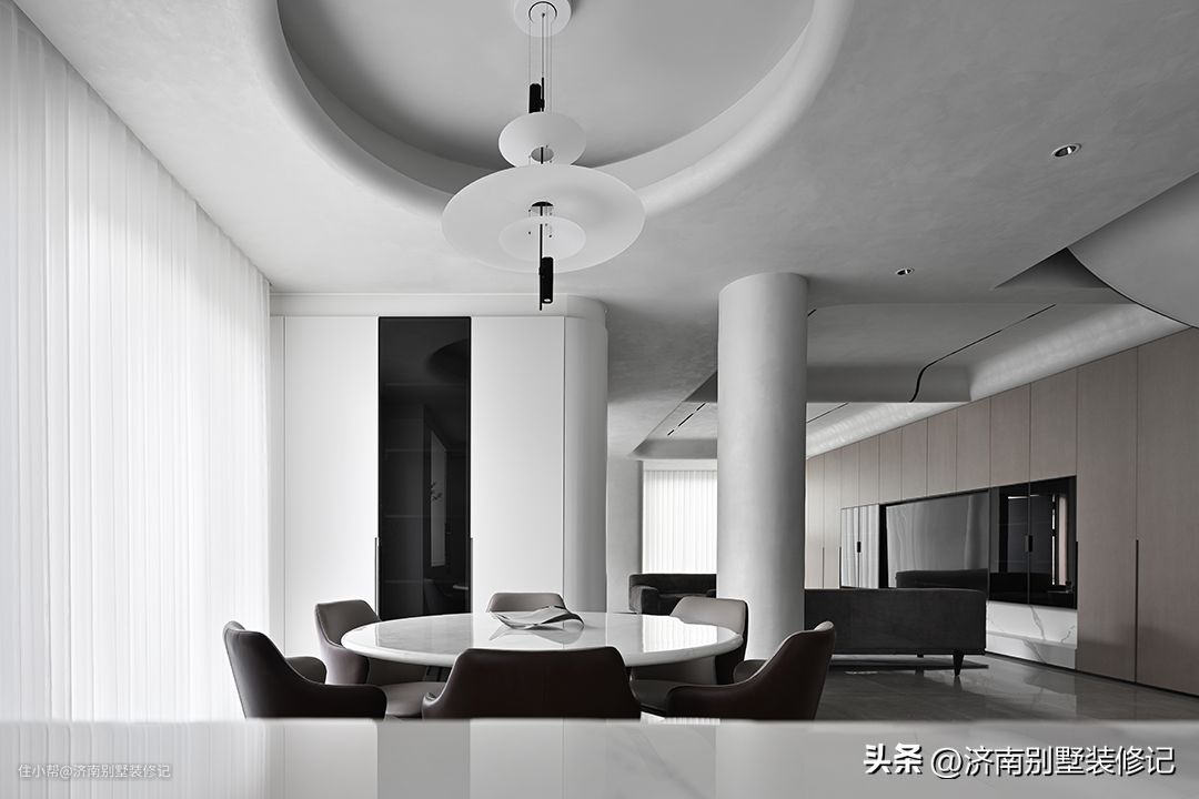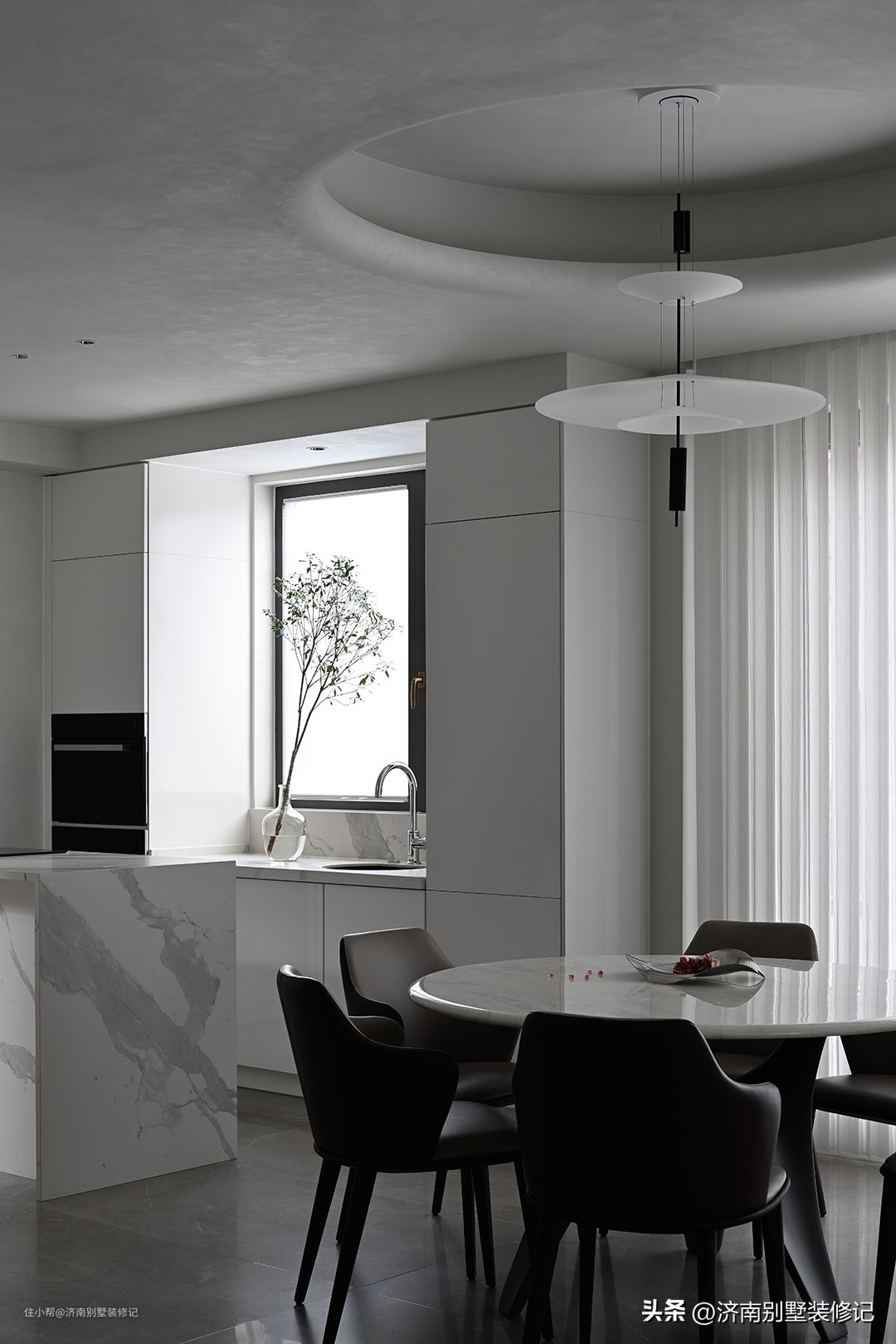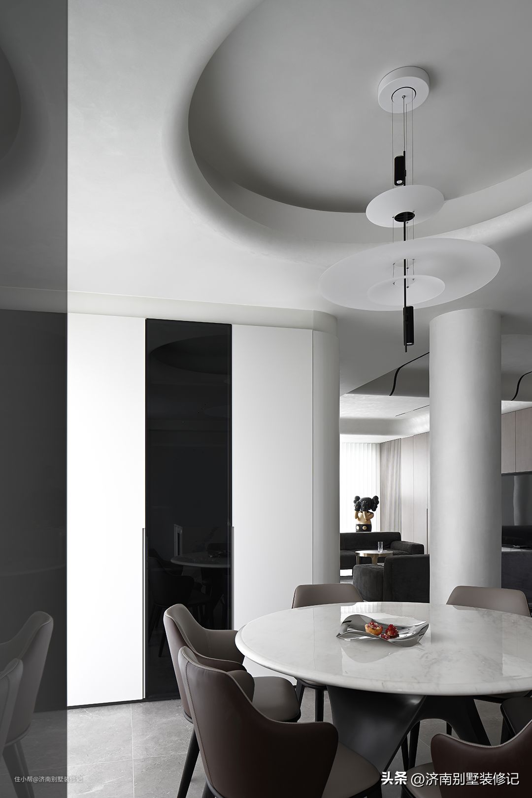 圆形餐桌作为家人团聚提供更多的可能,承载更多的欢声笑语、轻装饰重质感的设计凸显了空间整体的高级感。