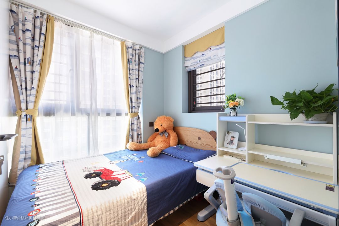 儿童房:儿童房虽然也是卧室,但跟主卧次卧等完全不同,色彩的选择会很影响孩子的情绪,所以在选择简洁,有趣花纹等会比较好,可以选择绒布与纱质的搭配。