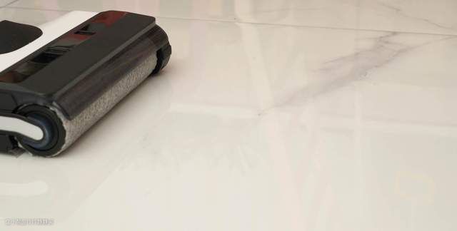 但对于有一些时间,已经风干了的地面顽固污渍,清洁效果会没有水大的洗地机那么立竿见影,需要在脏污上反复推拉几次或稍长时间的停在上面。算是硬币的两面,看用户的取舍了。
