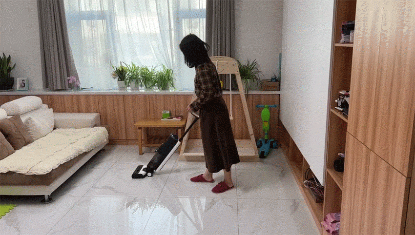 这点确实值得拿出来说一下,因为家中两个孩子不爱穿拖鞋。洗地机清洁后,地面有水痕,容易二次污染不说,孩子没两下小袜子就湿了,最重要的是,多少有滑倒的隐患。用添可芙万2.0LED洗地机,就不用担心地面水痕残留的问题了。清洁地面时,孩子在身边都不怕。
