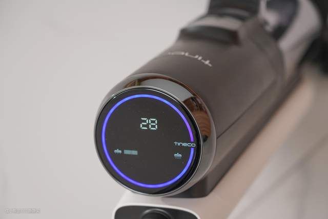 LED款的屏幕可以显示剩余电量、不同状态提示灯,以及当前地面的脏污程度。如果最外面的蓝色圈圈变红了,说明这块地面比较脏,需要多拖几下。也是智能感知地面脏污的一个体现。