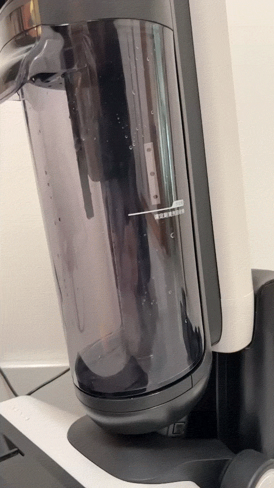 充满丰盈气泡的电解水参与涮洗滚刷后,被吸到污水箱的瞬间就完成了冲刷管道的工作。使用结束后手动倾倒脏水并补充清水就可以了,第二天拿起来就能用。