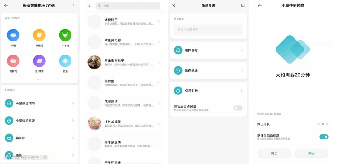 软件方面,针对米饭口感做了不少优化。通过大数据的参考制定出适合不同类型的大米的烹制方式,同时在APP中可以根据自己使用习惯进行更加个性化的烹饪调节。此外APP中更多的智能功能使用,支持菜谱、各类个性化设定。配合智能音箱等还能实现个性化智能联动,比如关联米饭烹饪好的场景设定,让小爱音箱自动进行特殊语音播报来提醒用户米饭已经做好。