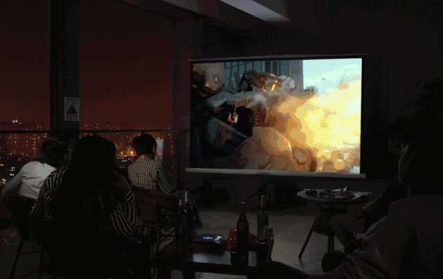 还记得我上面说的吗,传统投影仪采用的是3LCD投影技术。优点是高亮度,高对比度,高饱和色彩,总结来说就是画质会更好一些。重要的一点是,这种投影仪对光线的适应性很强,在白天也能使用。