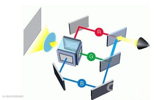3LCD投影技术:灯泡发出来的强光会直接被分解为红、绿、蓝这三种颜色的光。三种光会各自通过液晶板然后被赋予了形状和动作,最终通过棱镜显示出了清晰的影像。