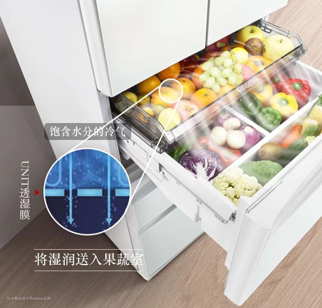 更值得一提的是东芝的雾化保鲜技术,采用原装进口UNIT透湿膜,透湿不透风,恒湿保鲜,实现果蔬长久储存,营养鲜活如初!