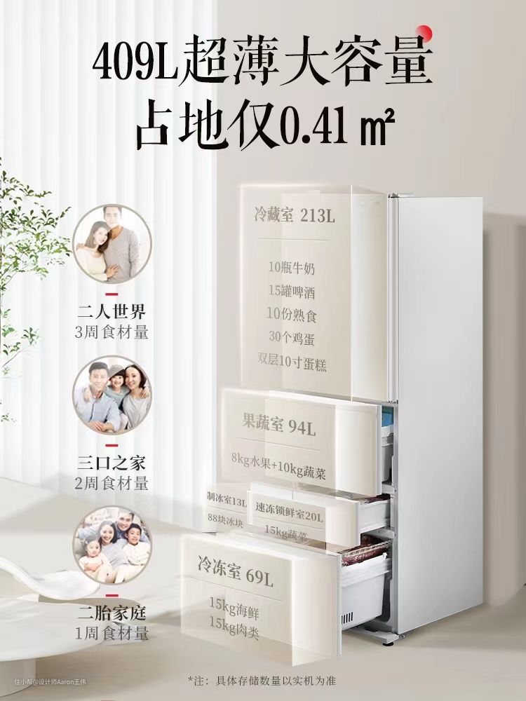 作为一名设计师,经常会在想,什么样的冰箱更适合当代年轻人的家呢,有人会说那当然得选技术先进的;也有人说现在“能装”是非常重要的;还有人说“颜值”也不能落下。