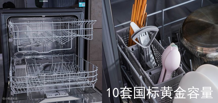 这款是西门子嵌入式洗碗机中性价比非常高的一款。10套中式国标碗篮容量大能满足大部分家庭的使用需求,洗锅也不在话下。