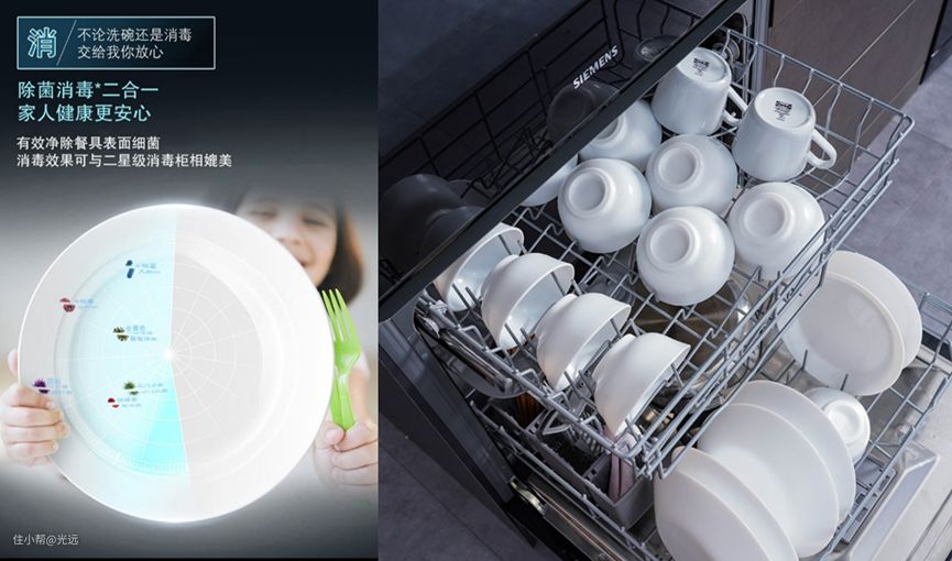 咱们日常中洗完的碗盘一般都是摆放在橱柜里,容易使各种霉菌增生,长时间放置还会落灰。现在的洗碗机大部分都有消毒烘干功能,洗+消+烘三合一,集清洗消毒存放各种功能,除菌率高达99.99%不仅用着放心还省地方、省预算,持续猛增的销售额可以说明一切。
