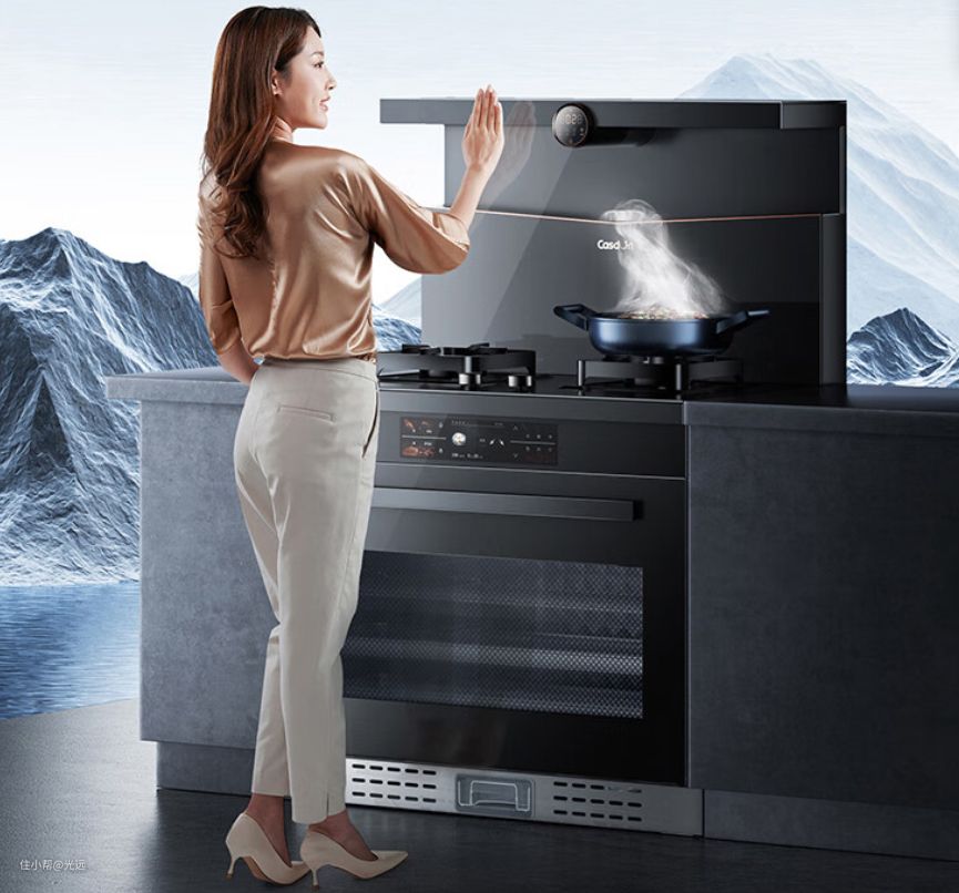 有恒温置物台,可以避免食物变凉,晚归也能吃上热乎的饭菜。六重油烟分离加上自清洁,灶台可以定时关闭,智能功能上要比前两款少一些。