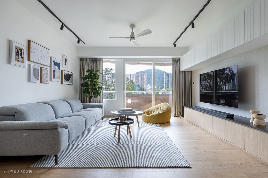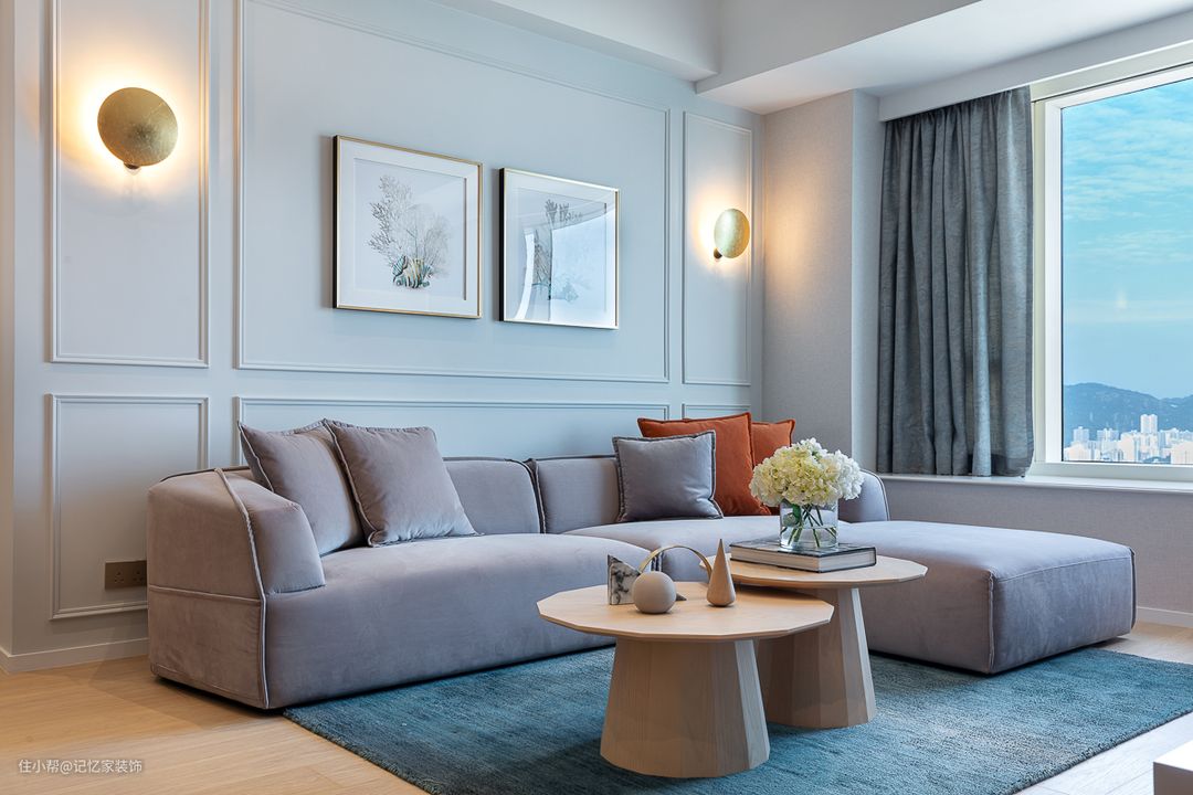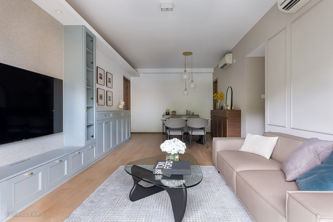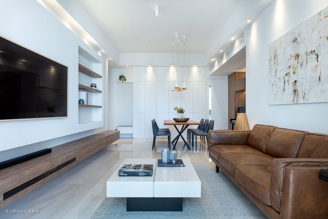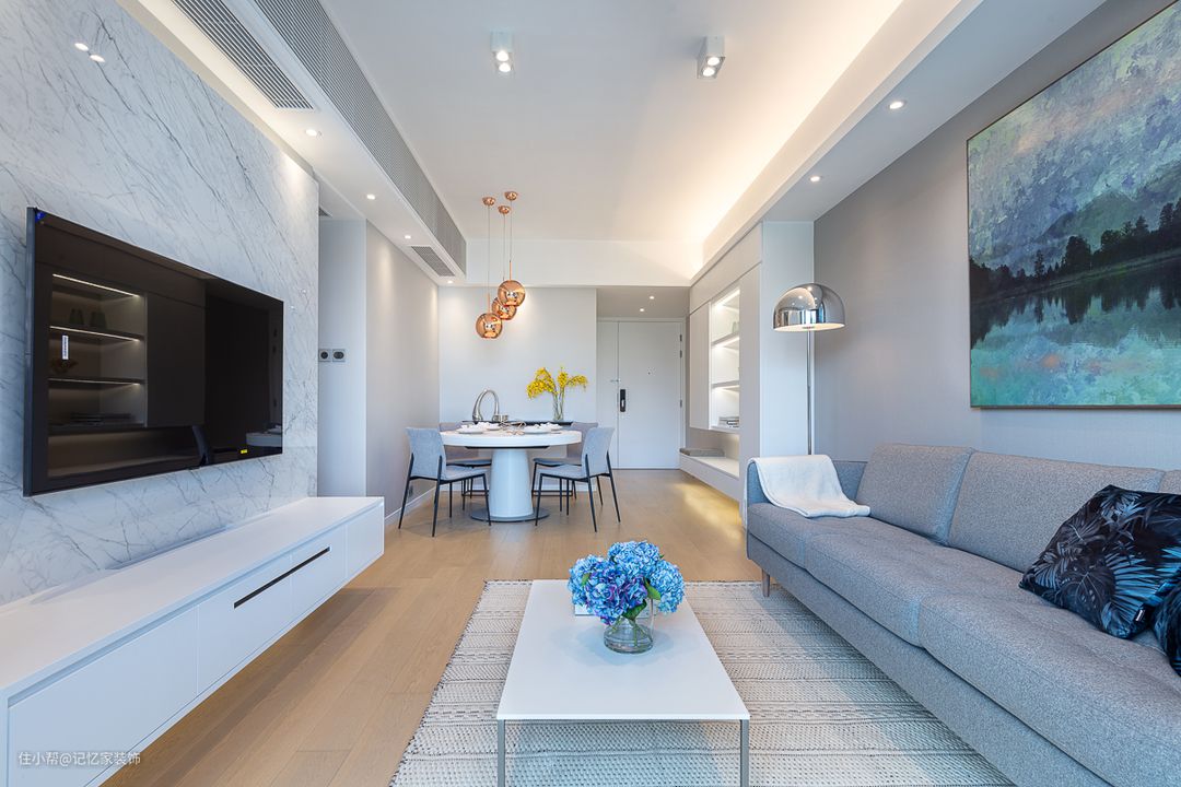 白色墙体,沙发的颜色就可以选择任何一种喜欢的颜色,因为白色跟是百搭色的兀。黑白灰经典色是永远不会出错的颜色。搭配暖色系抱枕或者挂画,让客厅多一些暖度。