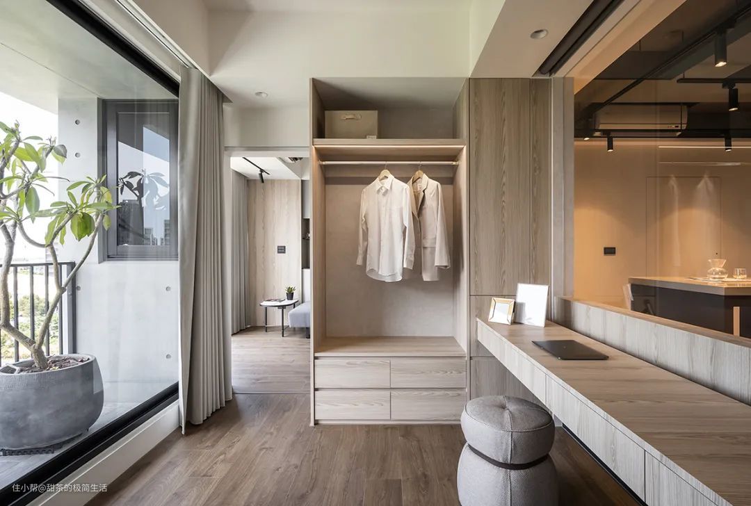 屋主日常在衣帽间搭配衣服时,可以把窗帘和门都关上,衣帽间瞬间就变成了一个私密的空间。