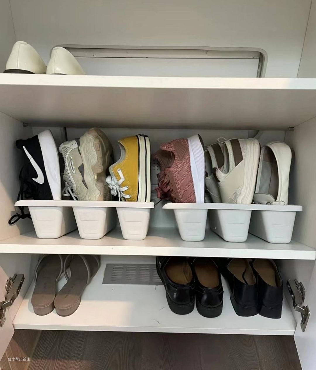 在入住收拾的时候,我将鞋子的根据高度做了分类,高度差不多的鞋子,放在一排。
