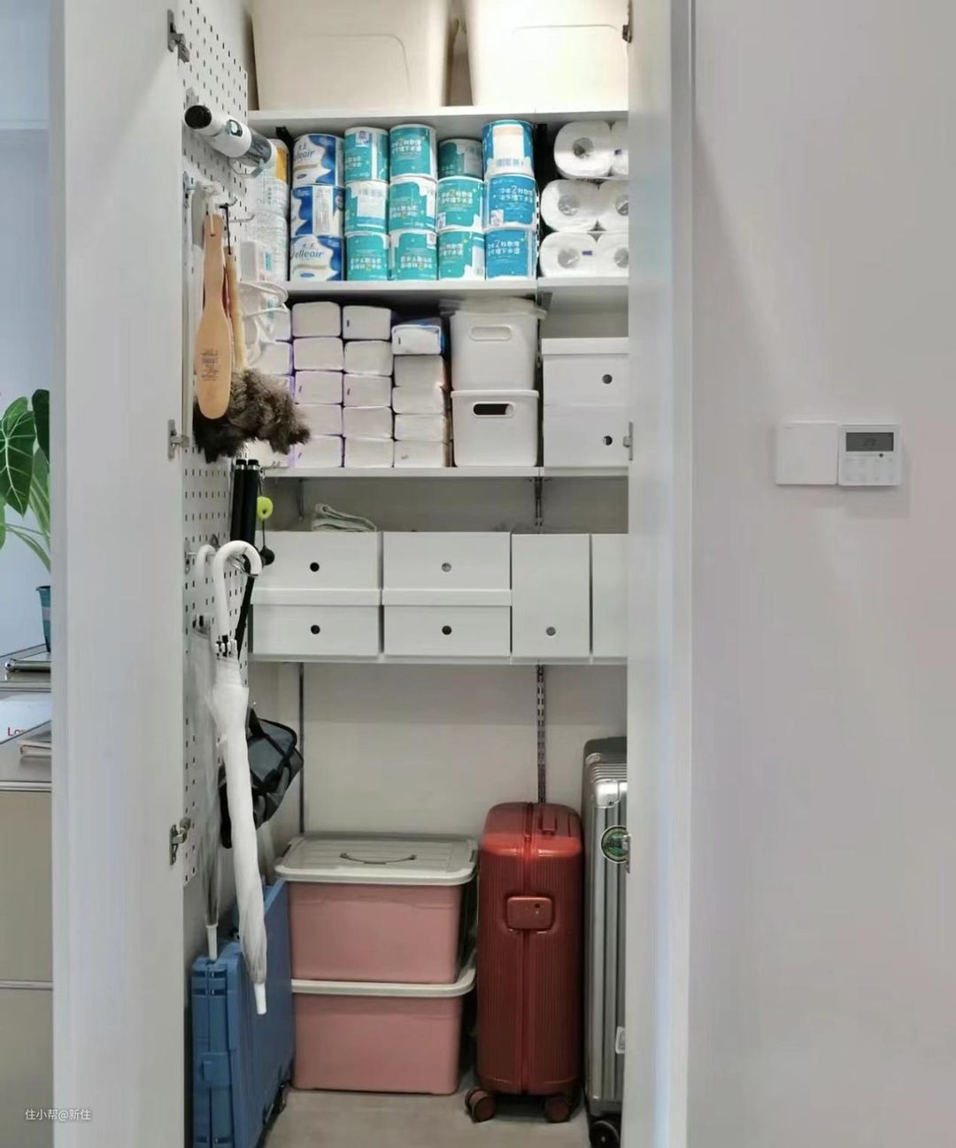 所以,我强烈建议大家:柜子一定要做活动层板,而且还要提前打好排孔,方便日后调节,如果可能,尽量增加留空层板、无底板设计。