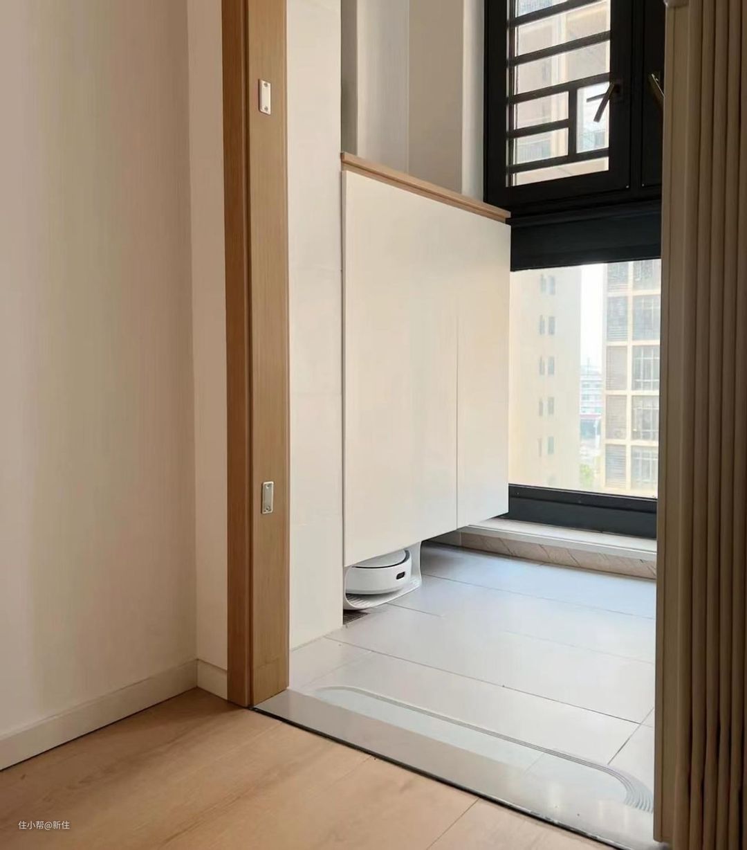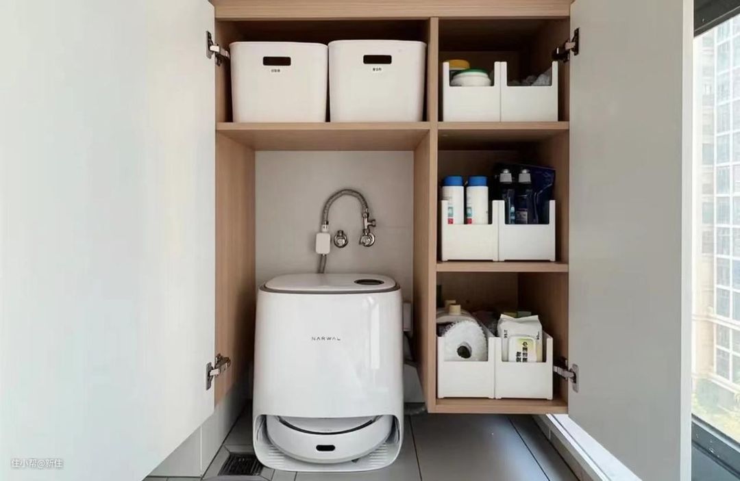 如果有扫拖一体机,而且带上下水模块的,则可以考虑直接把它安排到阳台的洗衣机旁,方便接下水。