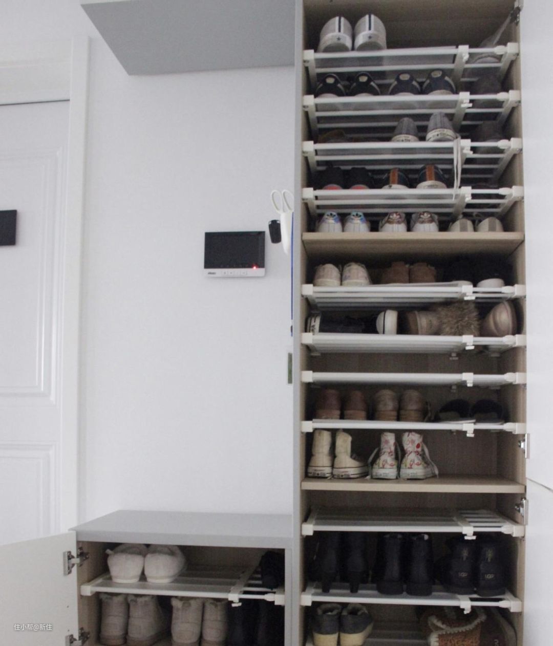 鞋柜容量更大了,还不影响拿取方便程度,未来也能随着需求调整。