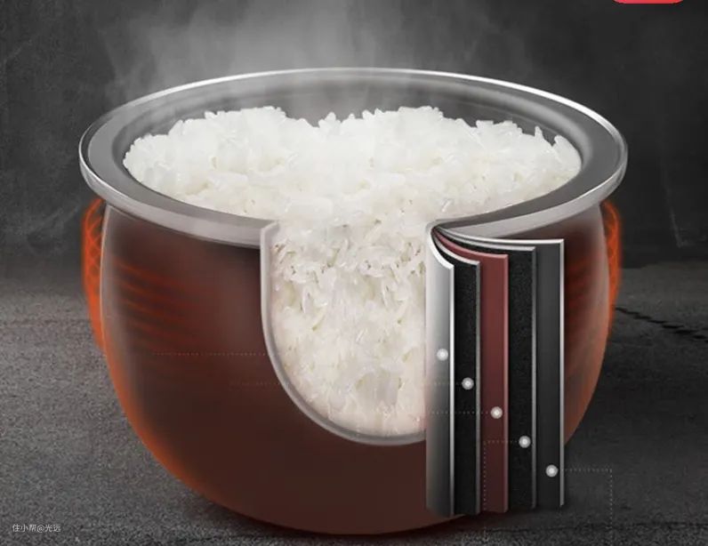 市面上大多数电饭煲都选用复合多层材料内胆,比起别的内胆材质来说,复合多层材料的热效率高,米饭在其中可受热均匀,而且还不容易粘锅,蓄热性也不错,建议大家首选这类内胆材质的电饭煲。