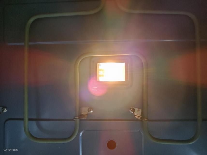 顶部是烤管和炉灯。顶部炉灯的设计我比较喜欢,能够清楚看到内部的烹饪情况,避免烤糊。