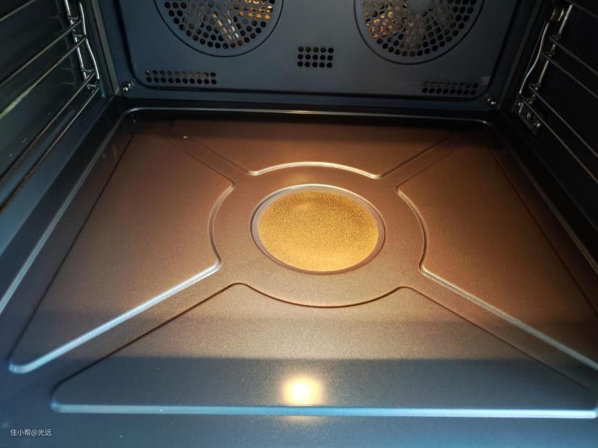 纳米陶瓷涂层的底部,含有隐藏式烤管,中间圆形的是底部加热盘,可以防止积水。